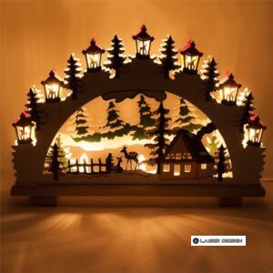 Christmas Ornaments Lamp Laser Cut Night Scene Free Vector Wooden Window Light
