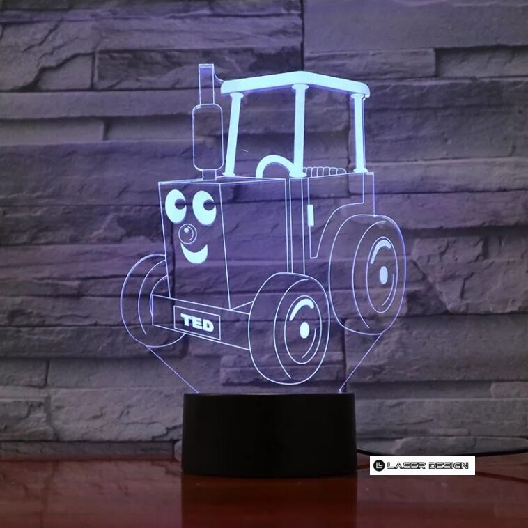 Laser Cut Free Vector 3D Tractor Ted Optical Hologram Illusion LED Lamp
