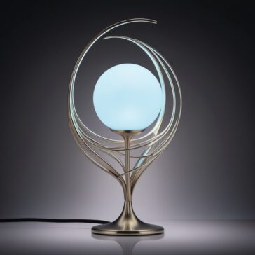 Night Lamp Bulb With An Intricate Curved Metal Framework Free Vector