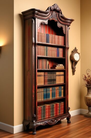 Freestanding Wooden Bookshelf Handcrafted Design Free Vector