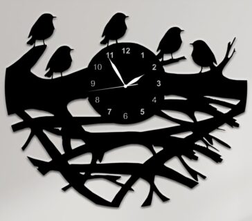 Wall Clock Laser Cut Birds & Nest Free Vector