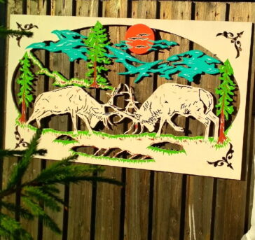 Wall Decor Garden Fence Wall Art Fighting Deer Laser Cut Outdoor DXF File