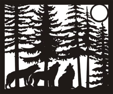 Plasma Metal Art Three Wolves Moon DXF File 30 X 36